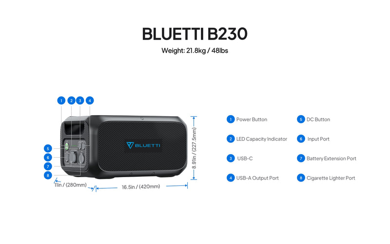 B230 has over 3,500 life cycles with top-notch LFP cells, offering up to 80% of the original capacity. Moreover, it is supplementary compatible with BLUETTI AC200MAX for a whopping capacity.
